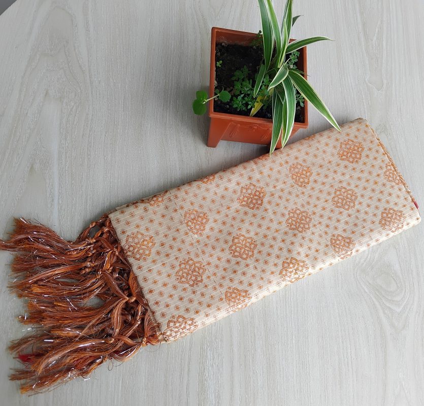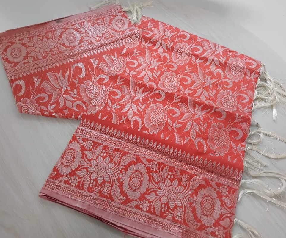 kanchi katan Saree 12 Hat, Flower Light Orange 104