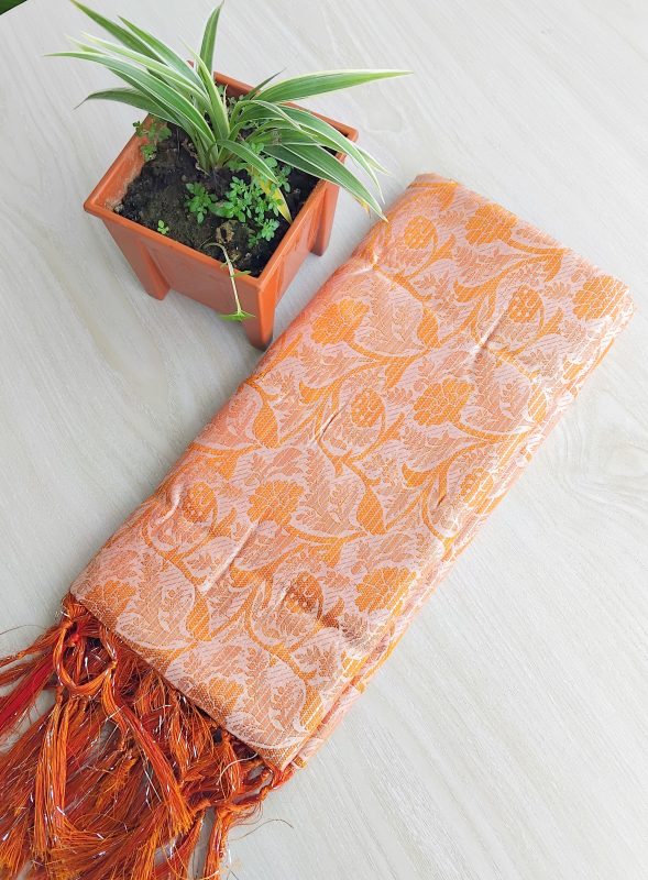 kanchi katan Saree 12 Hat, Kolka Light Orange 201