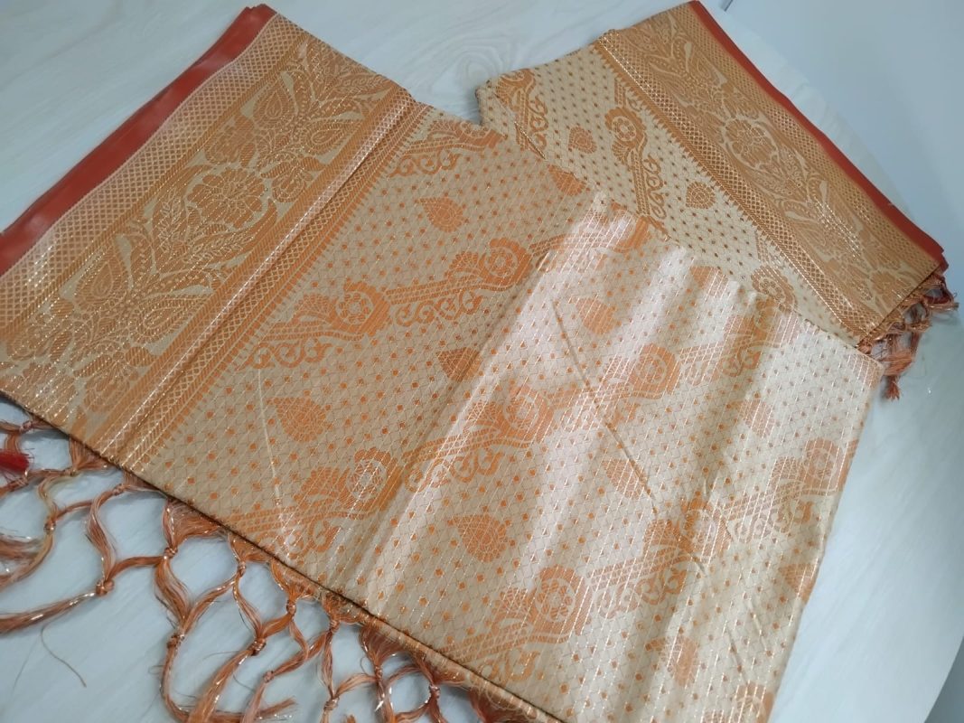 kanchi katan Saree 12 Hat, Flower Light Orange 104