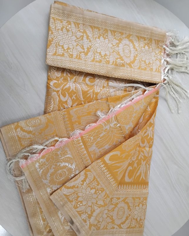 kanchi katan Saree 12 Hat, Flower Light Orange 104